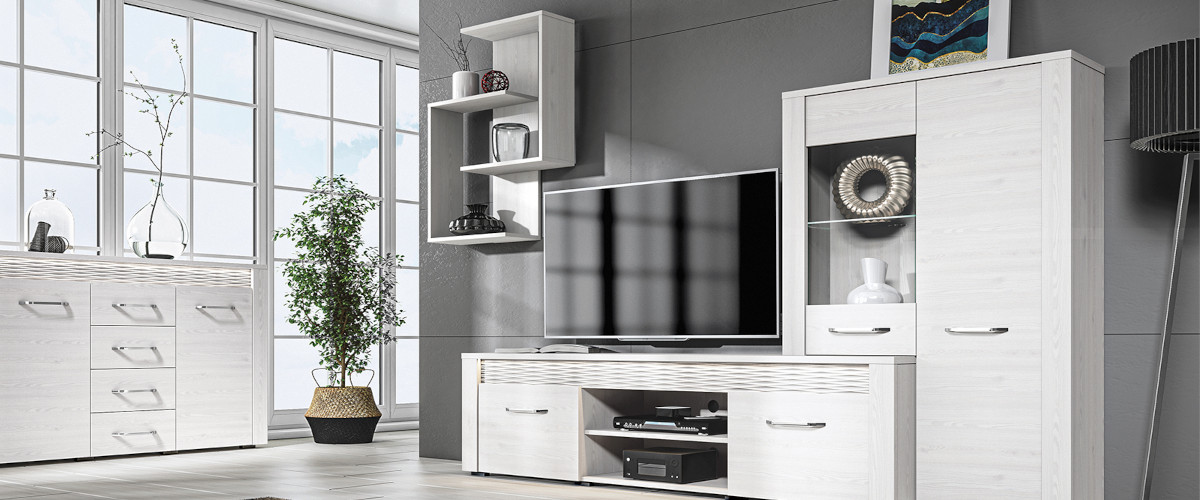 Kolekcja Clermont to meble w jasnej i przyjemnej dla oka kolorystyce, które idealnie będą pasować do nowoczesnych wnętrz. Dekor sosny śnieżnej z subtelnym wzorem usłojenia tworzy zgrany duet z ryflowaną podświetlaną wstawką MDF.