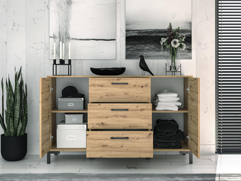 Meble marki ML MEBLE pozwalają bardzo dobrze zagospodarować poszczególne pomieszczenia w małych, średnich, jak i dużych przestrzeniach mieszkalnych. W ofercie znaleźć można zestawy meblowe i tzw. meblościanki w kolorze subtelnej i zawsze modnej bieli, dębu sonoma oraz dębu san remo. Przemyślany dobór materiałów, uniwersalna kolorystyka, a także spora ilość brył w każdym systemie mebli dają ogromne pole manewru do urządzania danego wnętrza i dają gwarancję zaspokojenia gustów nie tylko domowników, ale również i gości. Konkretne zestawy składają się najczęściej z szaf, komód, komód RTV, podświetlanych ledami witryn, stolików, a także wysokiej jakości kompletnych mebli do pokoju młodzieżowego czy dziecięcego. Można dzięki nim stworzyć nowoczesny styl, a wnętrza zyskują na przestronności, klimatyczności oraz przyjemnej dla oka harmonijności.