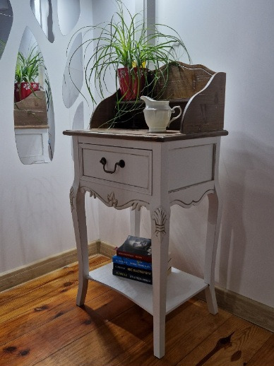 Szafka z nadstawką Rimini White wykonana jest z drewna i wysokiej jakości płyty MDF, co jest gwarancją trwałości na wiele lat. Charakterystycznym elementem mebla jest urocza nadstawka, która razem z szafką tworzy mini sekretarzyk. Poza funkcjonalną nadstawką szafka Rimini White posiada szufladę oraz półkę w dolnej części. Gięte rzeźbione nogi, świeży biały kolor mebla oraz postarzenia na całej powierzchni do cały urok mebli z tej wyjątkowej kolekcji.