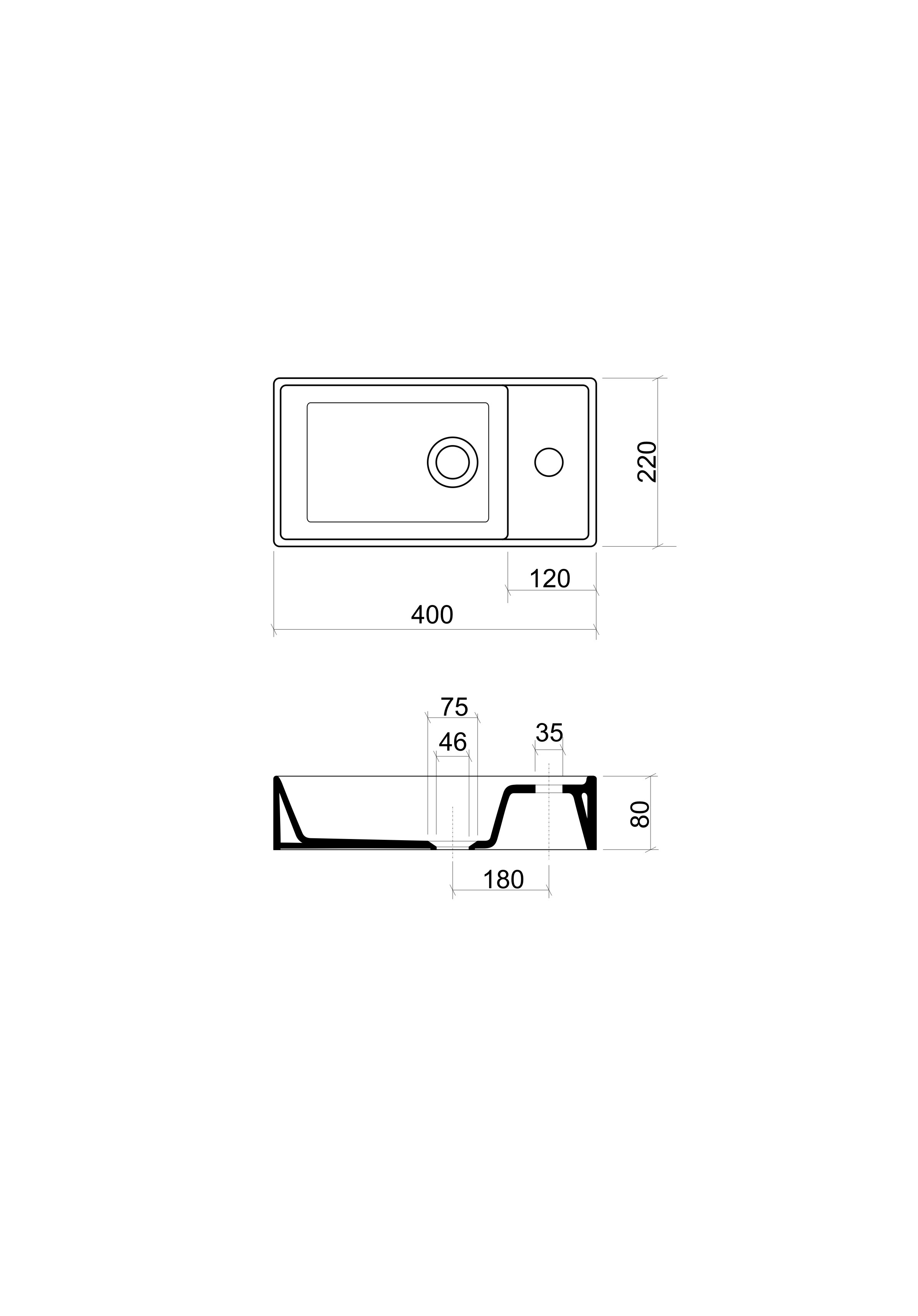 Umywalka została wykona z najwyżej jakości ceramiki, charakteryzuje się lekką formą i wytrzymałością. Umywalka posiada standardowy otwór na baterię oraz odpływ.