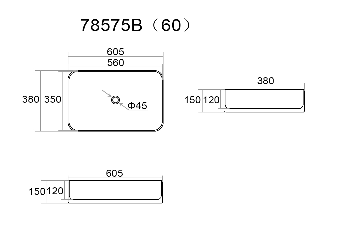 Umywalka nablatowa o szerokości 61 cm wykonana z wysokiej jakości ceramiki w kolorze granatowym. Powierzchnia matowa.