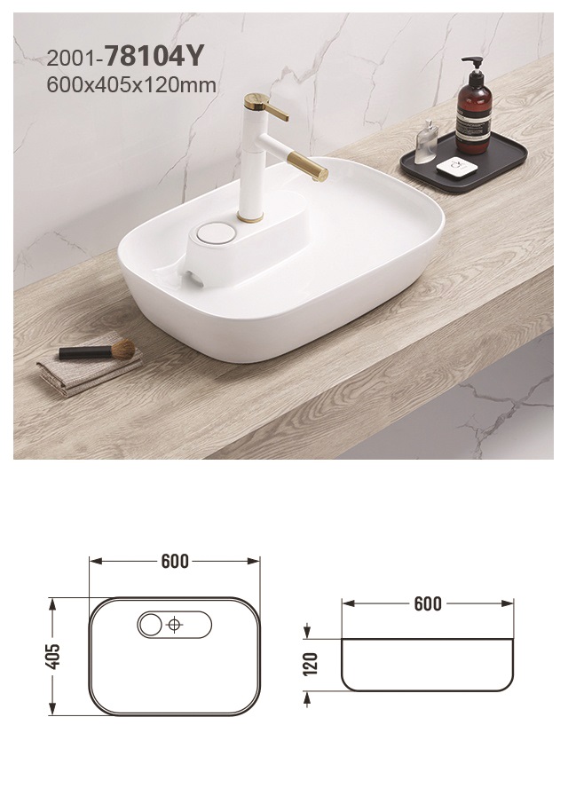 Umywalka nablatowa o szerokości 60 cm owalna wykonana z wysokiej jakości ceramiki w kolorze białym. Powierzchnia połyskująca.